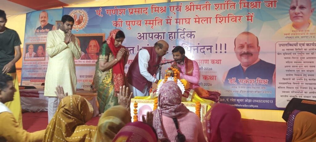 सतना/दिल्ली/प्रयागराज। माघ मेला प्रयागराज में पं. गणेश प्रसाद मिश्र सेवा न्यास द्वारा पं. गणेश प्रसाद मिश्र जी एवं श्रीमती शांति मिश्र जी की पुण्य स्मृति में 48वाँ निःशुल्क स्वास्थ्य शिविर एवं भक्तमाल कथा का भव्य आयोजन किया गया। कार्यक्रम का शुभारंभ न्यास अध्यक्ष डॉ. राकेश मिश्र द्वारा दद्दा जी एवं बाई के चित्र के समक्ष दीप प्रज्वलन व पुष्पांजलि अर्पित कर किया गया। इस अवसर पर “नर सेवा ही नारायण सेवा” के भाव से निरंतर सेवा का संकल्प लिया गया।